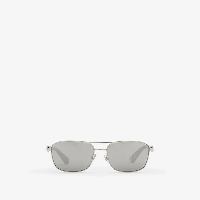 Metal Shield Rectangular Sunglasses in Silver - Men | Burberry® Official