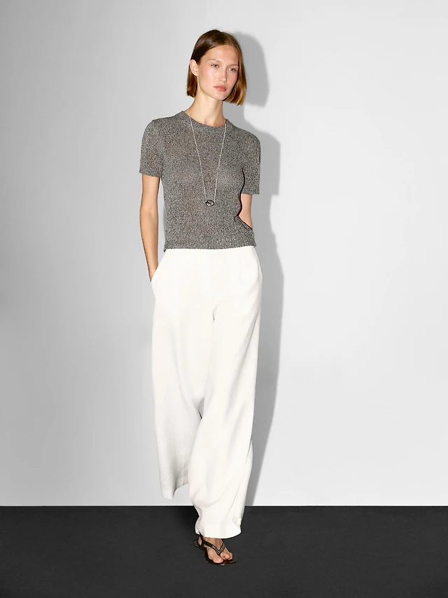 Metallic short sleeve knit sweater