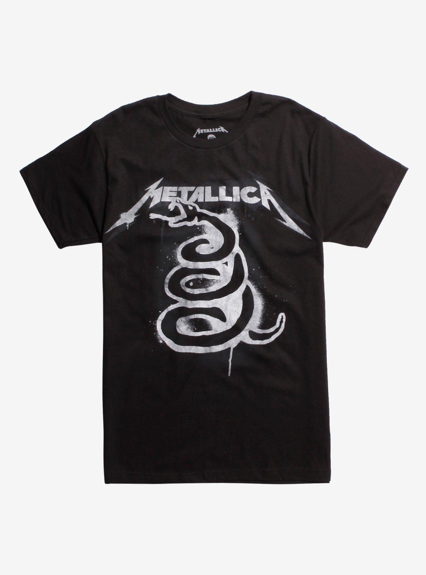 What I've felt, what I've known Never shined through in what I've shown Never free, never me So I dub thee unforgiven Rock out in this black tee from Metallica's Black Album . It features a graffiti style logo and snake design, just like the album cover. Want the matching infant bodysuit? Click here.