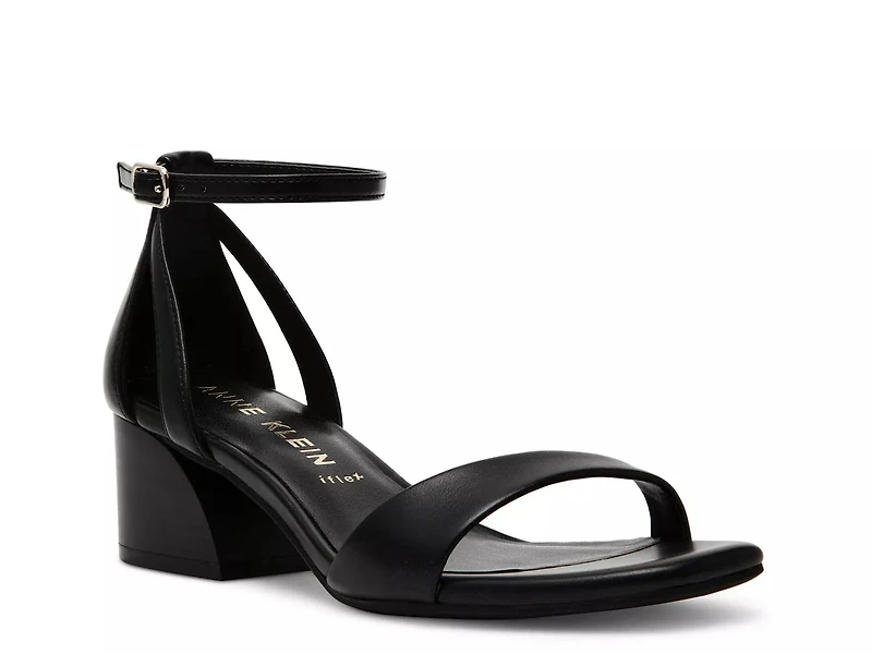 Lend a polished look to your attire with the Mia sandal from Anne Klein. Glossy upper with square open toe defines this ankle strap sandal fashioned with a flared block heel for enhanced elegance.