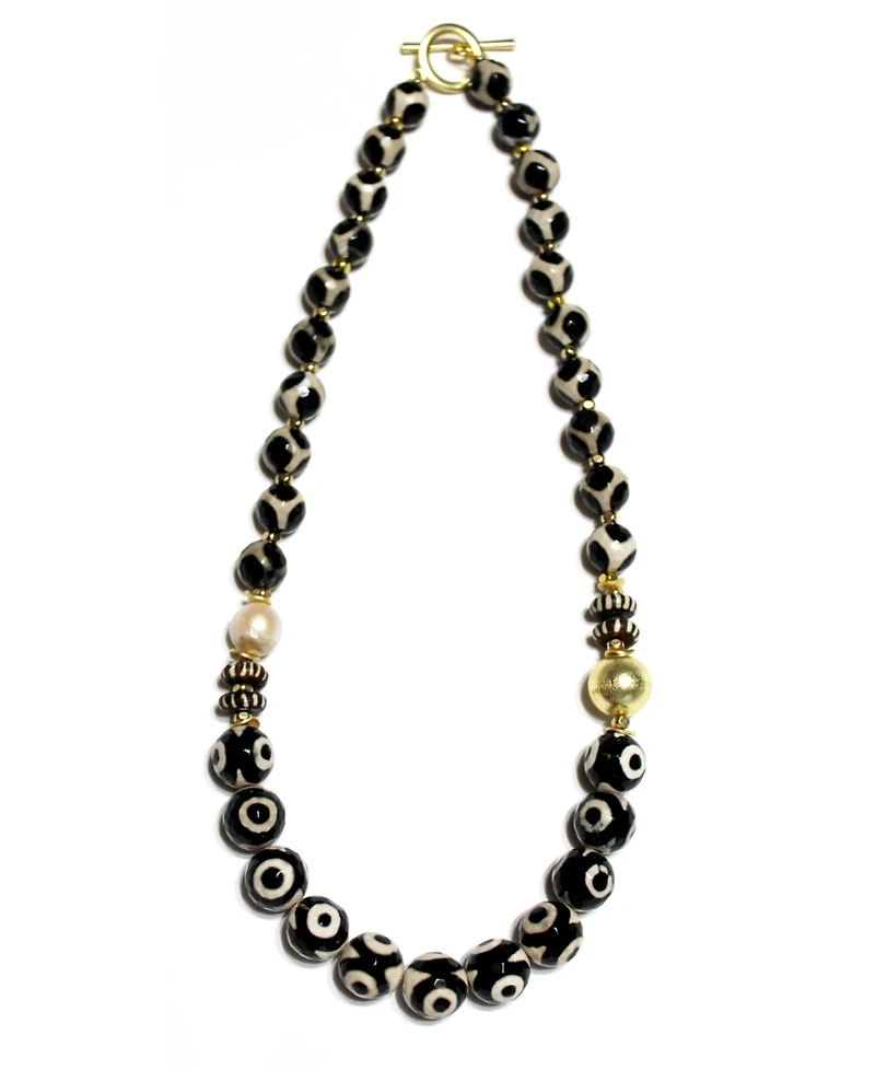 Michael Gabriel Designs Black Dahlia Tibetan Agate Beads and Genuine Pearl Necklace