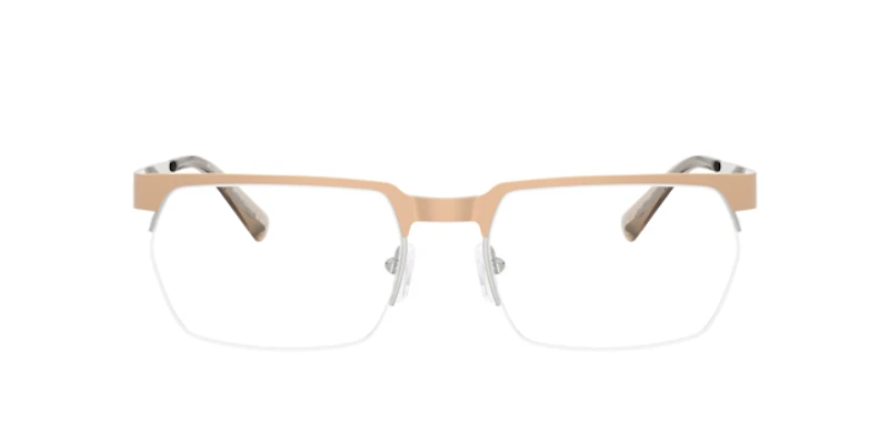 The michael kors mk3106 zambia eyeglasses blend modern sophistication with functional design. Their semi-rimless rectangle glasses frames, crafted from lightweight metal, feature a sleek gold front for a refined touch. Eyeglasses with adjustable nosepads offer customizable comfort, while the tapered metal temples are adorned with a cut-out logo and subtle color contrasts for added flair. Perfect for a streamlined and stylish look.