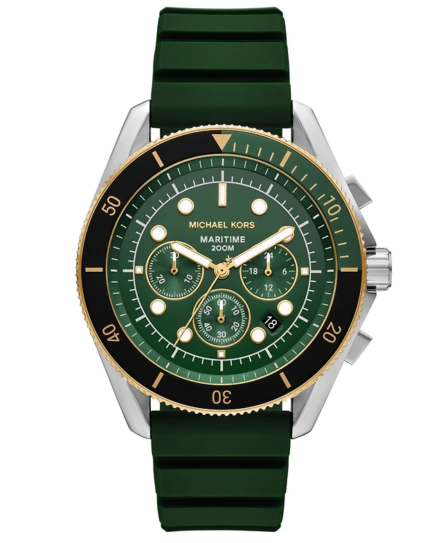 Michael Kors Men's Maritime Chronograph Green Silicone Watch, 45mm