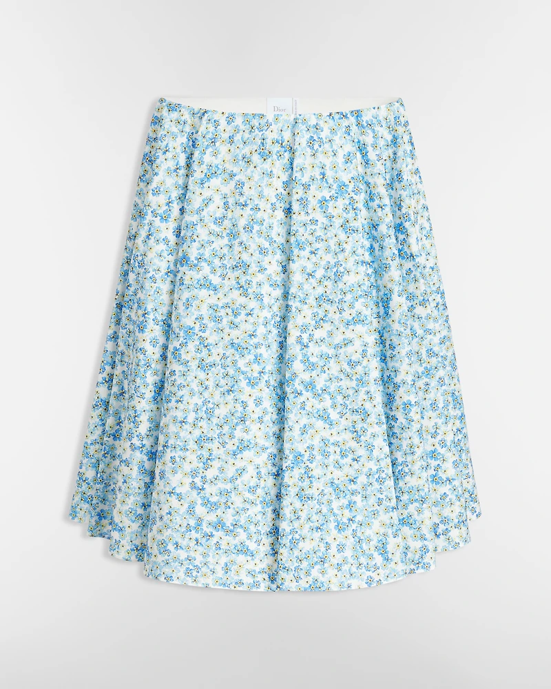 A playful icon of Jonathan Anderson's debut collection for the House, the forget-me-not celebrates Dior's floral heritage in the Dior Myosotis motif. Made in white and blue cotton poplin, the mid-length skirt has an elegant, flared silhouette. The mid-length skirt can be paired with a blouse from the collection for a resolutely Dior floral look.