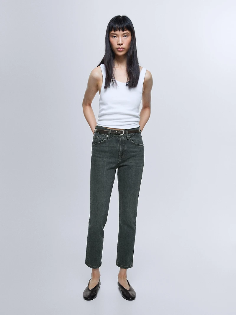 Mid-Rise Cropped Straight Stretch Jean