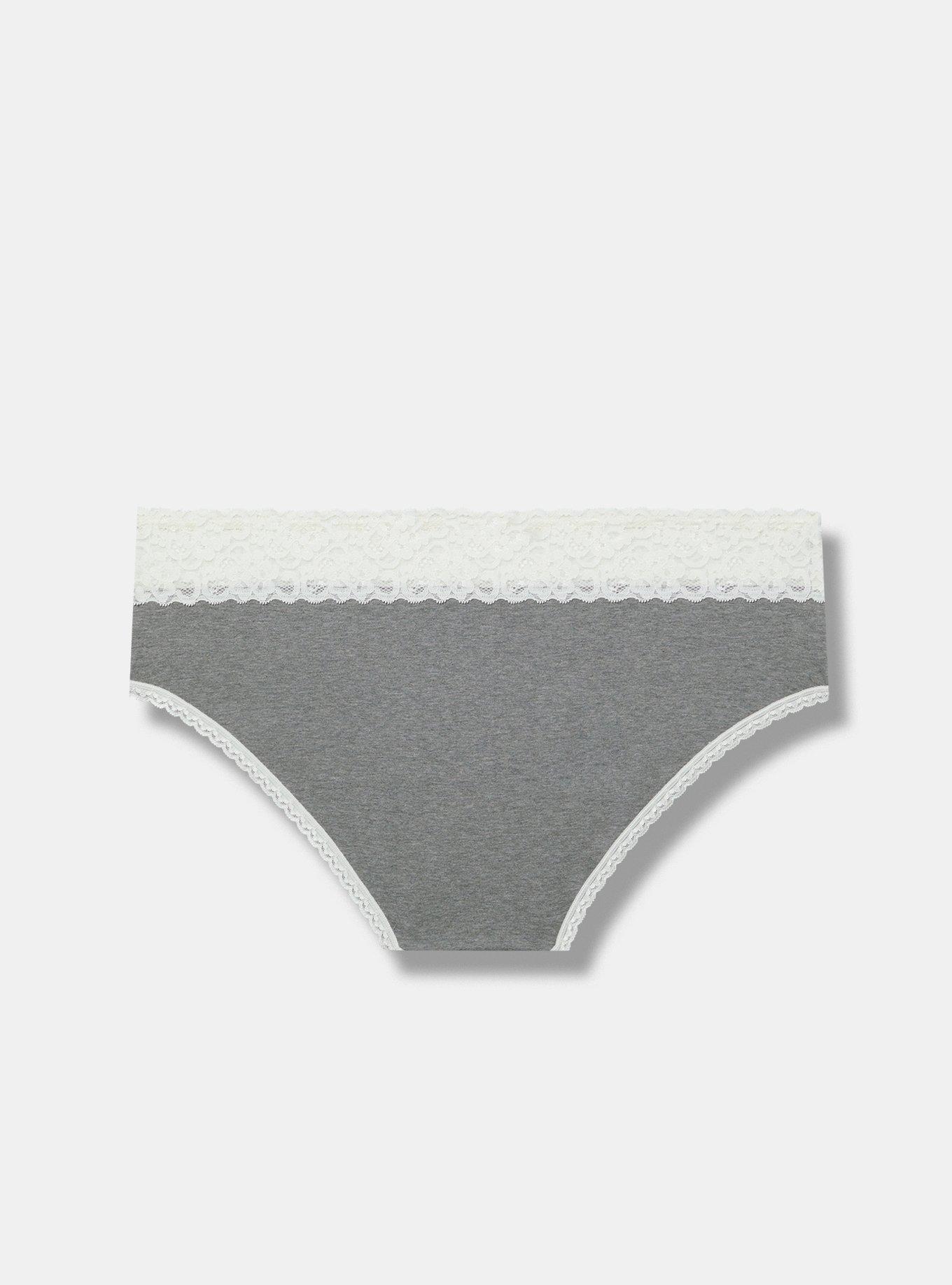 FIT Mid rise. Medium coverage. MATERIALS + CARE Cotton-blend knit fabric. 95% cotton, 5% spandex. Machine wash cold. Dry flat. Imported. DETAILS Lace trim.