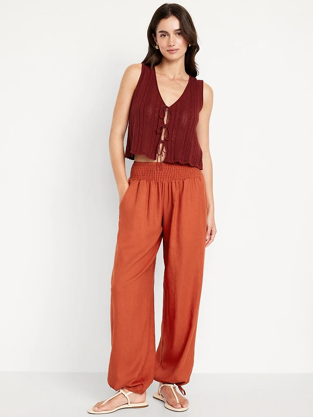 Mid-Rise Linen-Blend Harem Pants