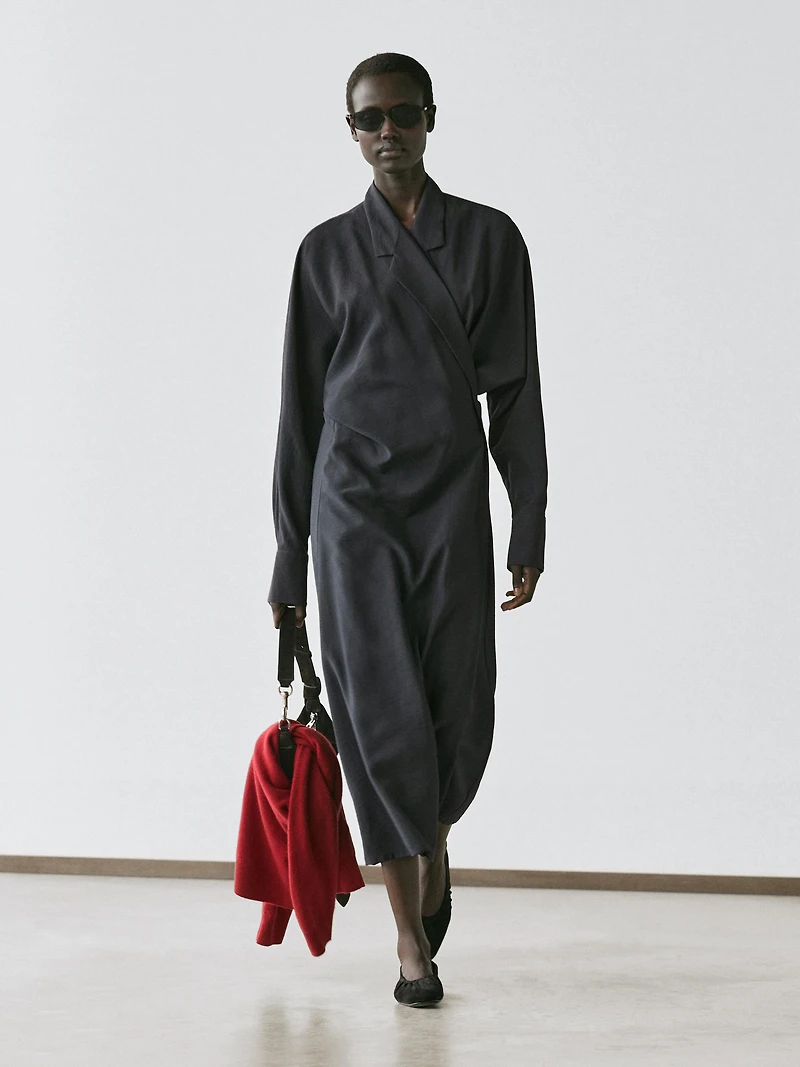 FLOWY DRAPED MIDI DRESS