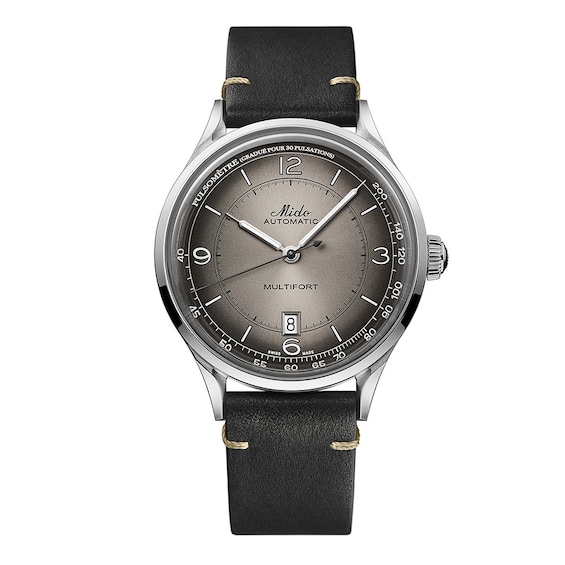 Mido Men's Swiss Automatic Multifort Black Leather Strap Watch 42mm