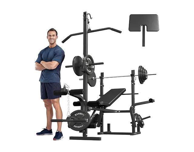 Mikolo 8 in 1 Olympic Weight Bench Set with Leg Extension and Leg Curl, Multi-Function Bench Press Set with Preacher Curl Pad and Chest Fly, Full-Body