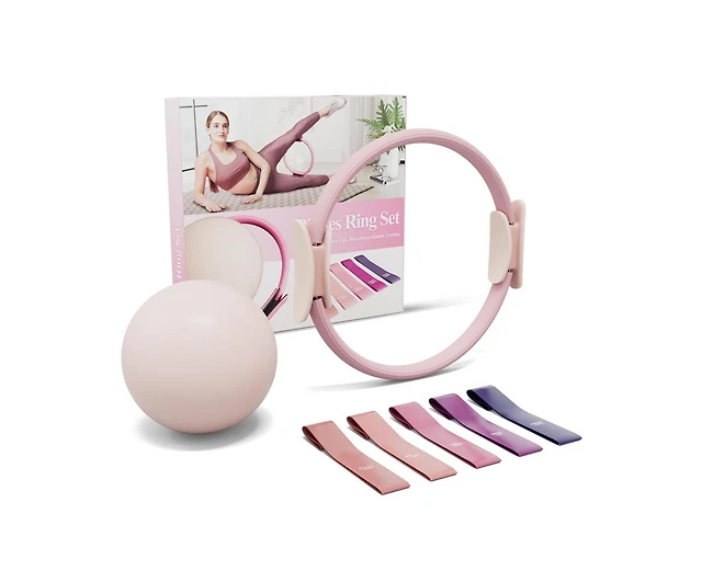 Mikolo Pilates Ring Set – 14” Magic Circle (38lbs), 5 Resistance Bands & 9.8” Ball