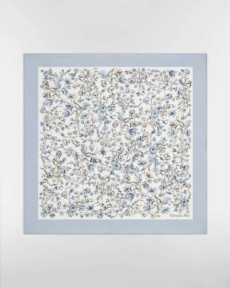 The square scarf offers a delicate pastel variation of Pietro Ruffo's Millefiori print, inspired by Baroque paintings. Crafted in white and pink silk twill, the double-sided style features hand-rolled edges and is enhanced by the Christian Dior signature. The square scarf can be worn tied around the neck or head to complete a Dior look.