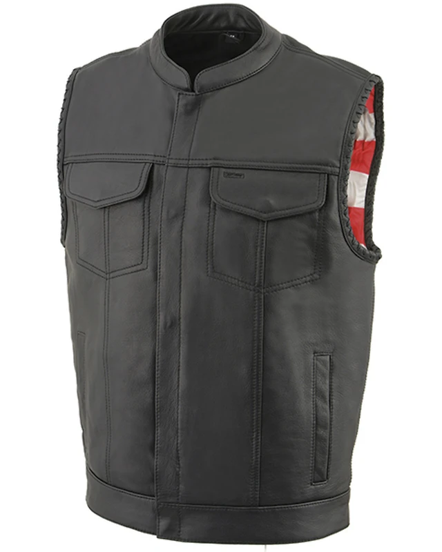 Milwaukee Leather Men's Old Glory Laced Arm Hole Concealed Carry Leather Vest