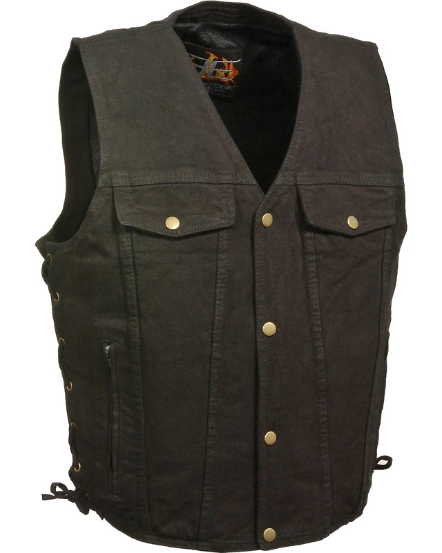 Milwaukee Leather Men's Side Lace Denim Vest with Chest Pockets