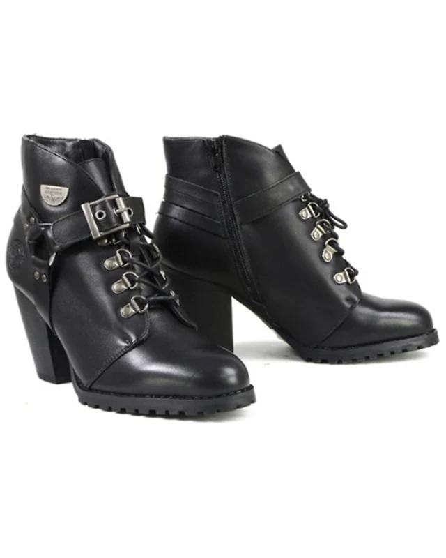 Milwaukee Leather Women's 7" Lace-To-Toe Harness Motorcycle Boots - Round Toe
