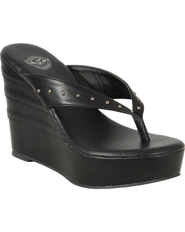 Milwaukee Leather Women's Studded Double Strap Wedge Sandals