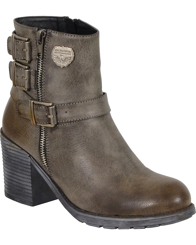 Milwaukee Leather Women's Waterproof Side Buckle Boots - Round Toe