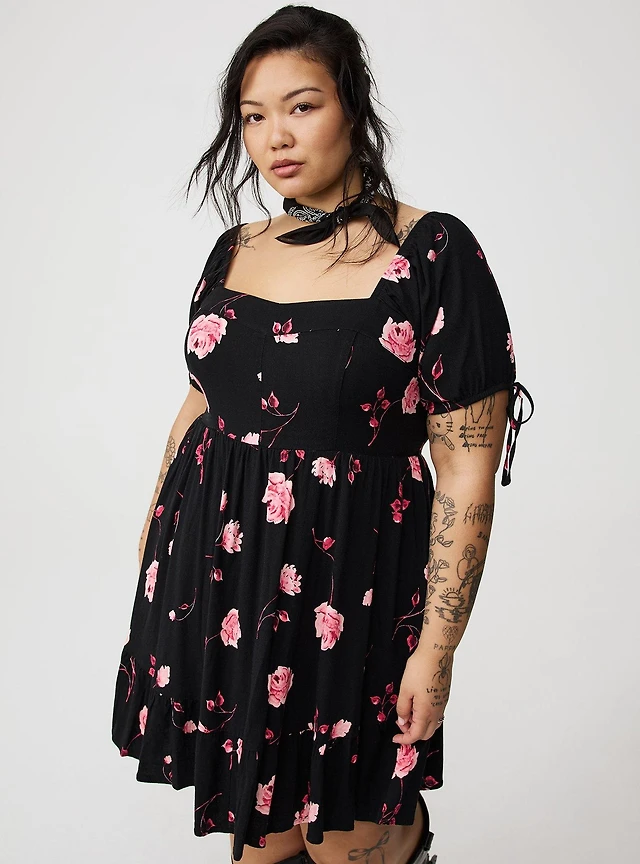 AE Puff Sleeve Tie Front Plaid Mini Dress