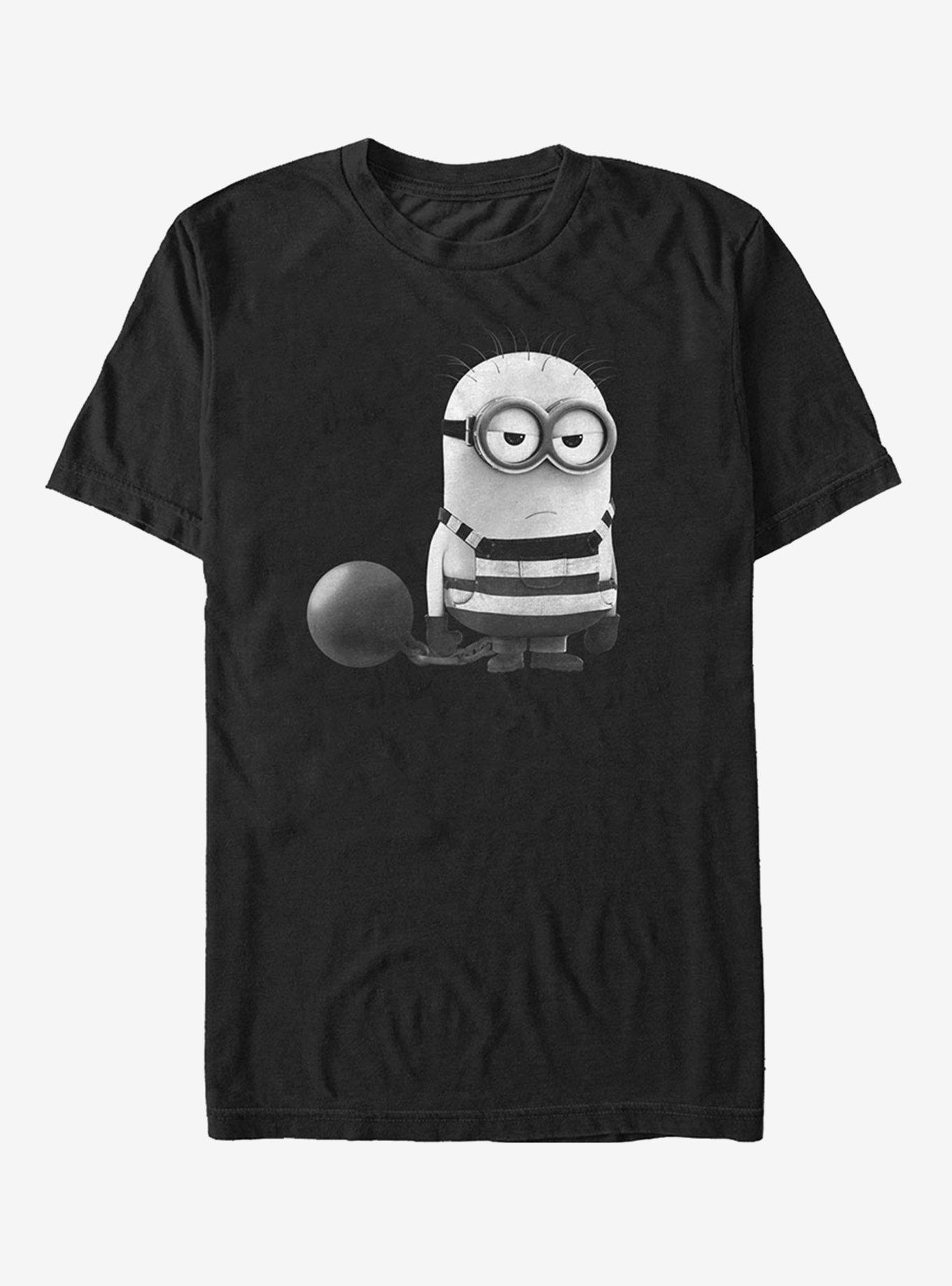 Those pesky Minions are always getting themselves into trouble, but at least they look good doing it in the Despicable Me 3 Grumpy Prisoner Men's T-Shirt! A Minion printed in grayscale, with his black and white prison garb, looks grumpy after being arrested for trespassing a talent show on this funny Despicable Me 3 shirt.