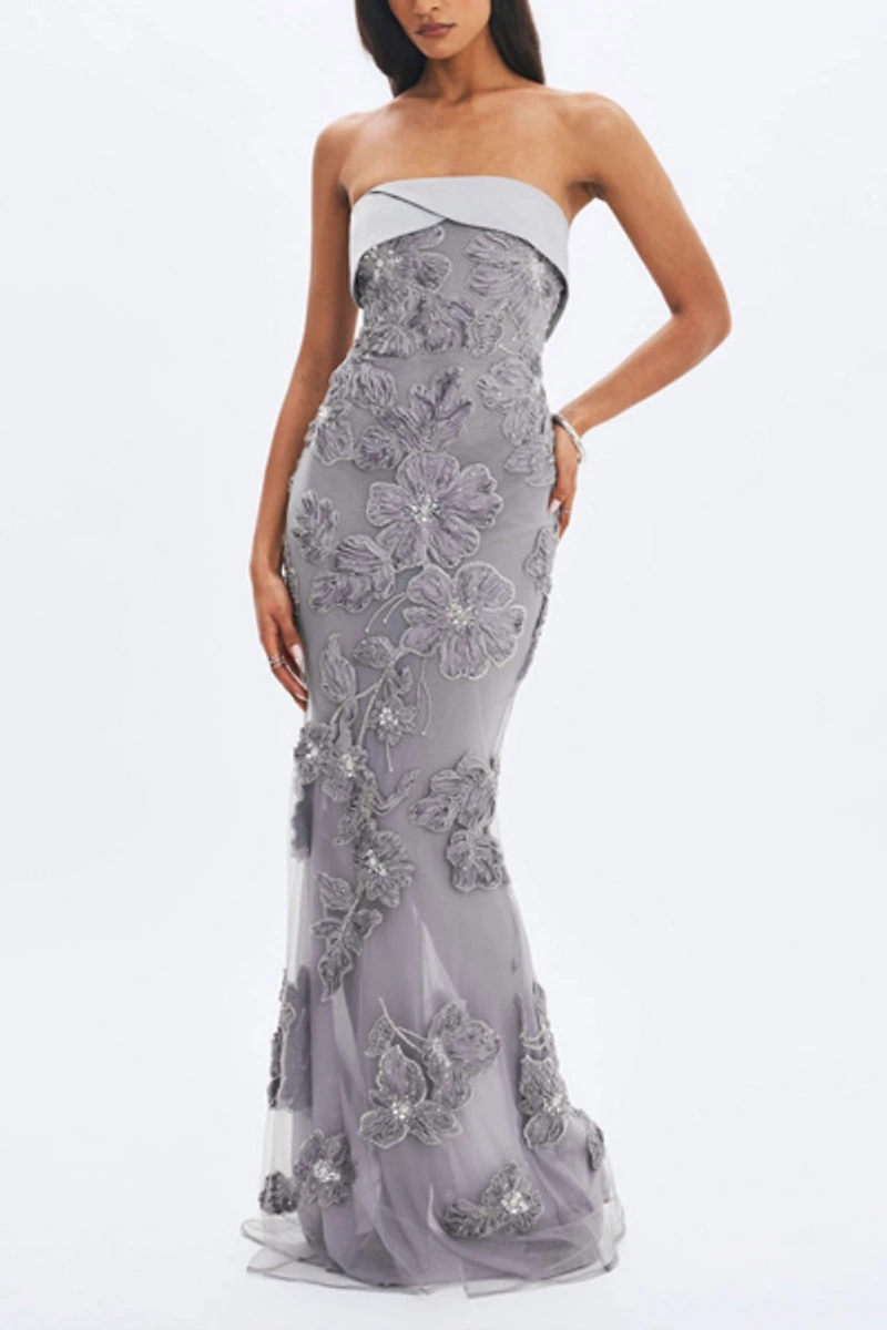 Miss Circle Raphaela Beaded Floral Strapless Mermaid Maxi Dress