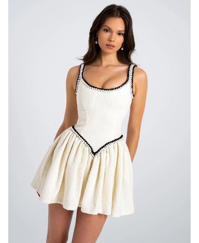 Miss Circle Women's Coco White Boucle Tweed V Waist Mini Dress