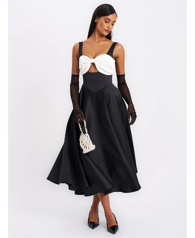 Miss Circle Women's Edda Black Maxi Gown with White Bow