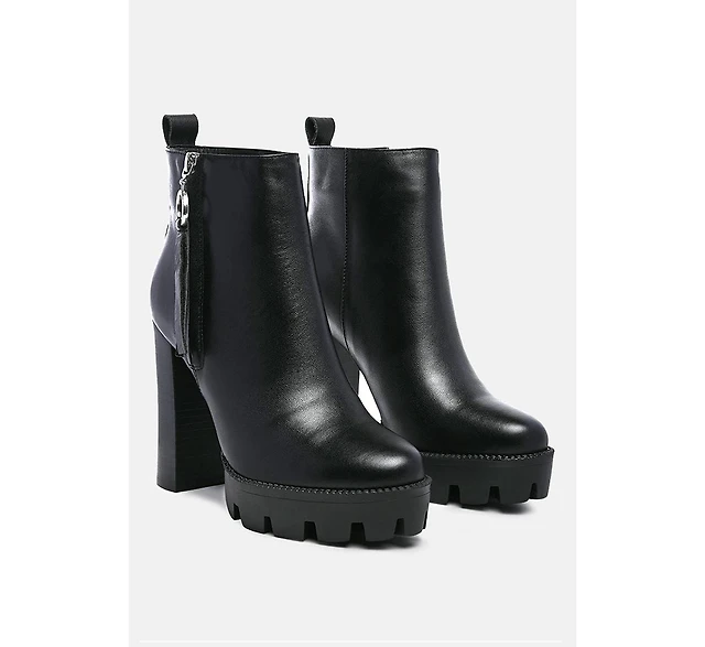 Mistress High Block Heeled Chunky Leather Boot in Beige
