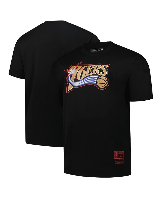 Mitchell & Ness Men's Black Philadelphia 76ers Big Tall Hardwood Classics Vintage Logo T-Shirt