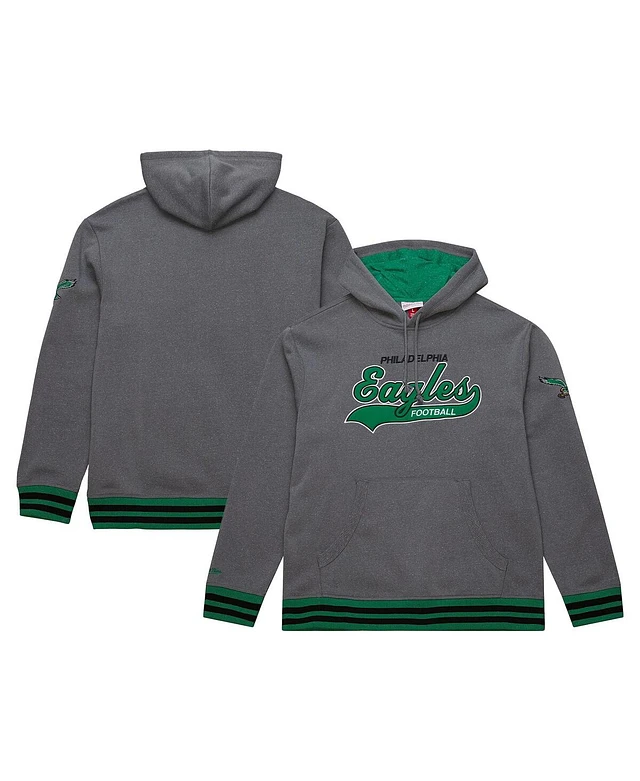 Mitchell & Ness Men's Heather Gray Philadelphia Eagles Vintage Logo Snow Washed Fleece Pullover Hoodie