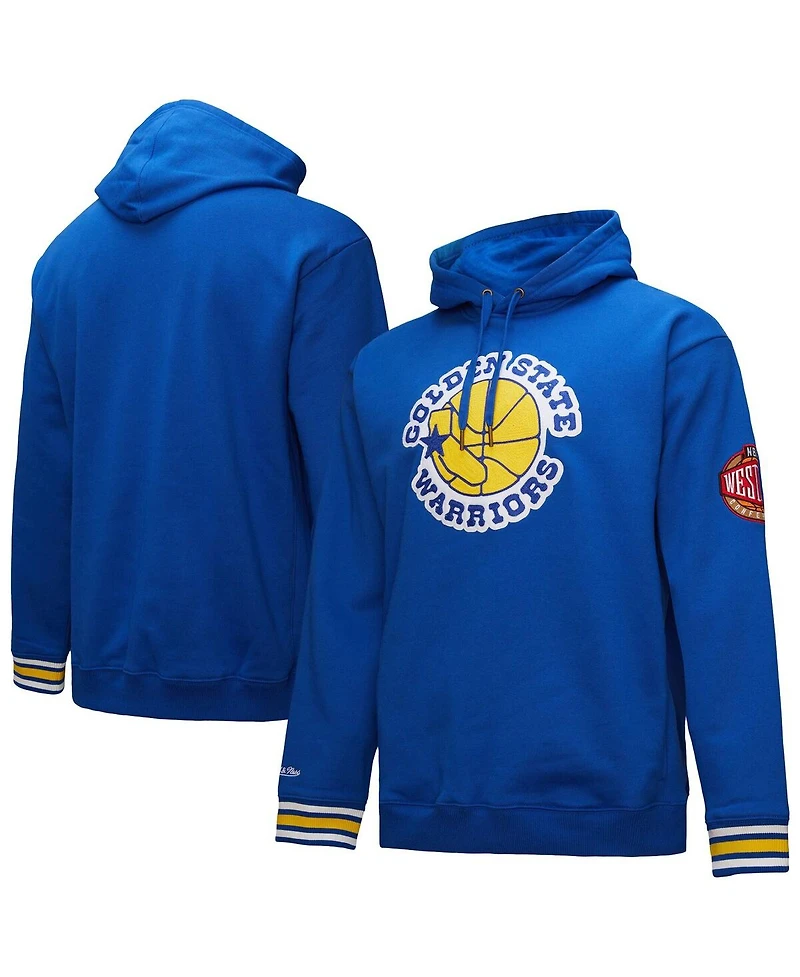 Mitchell & Ness Men's Royal Golden State Warriors Chainstitch Applique Vintage Heavyweight Pullover Hoodie