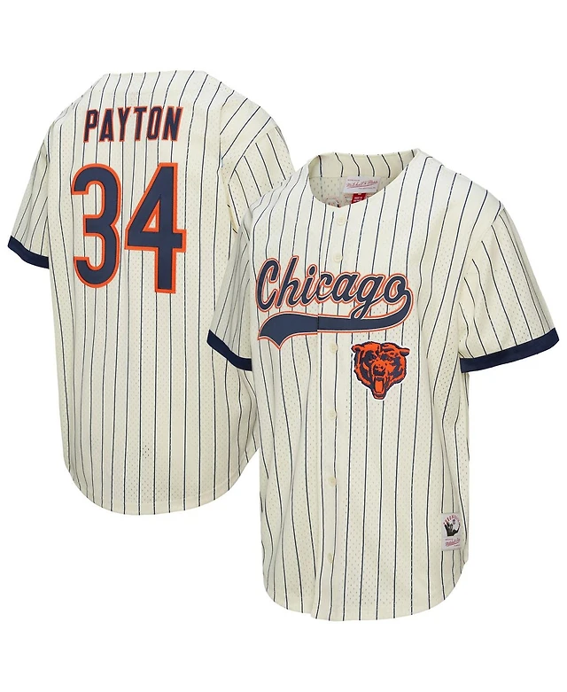 Mitchell & Ness Men's Walter Payton Cream Chicago Bears Name Number Mesh Button-Up Baseball Jersey