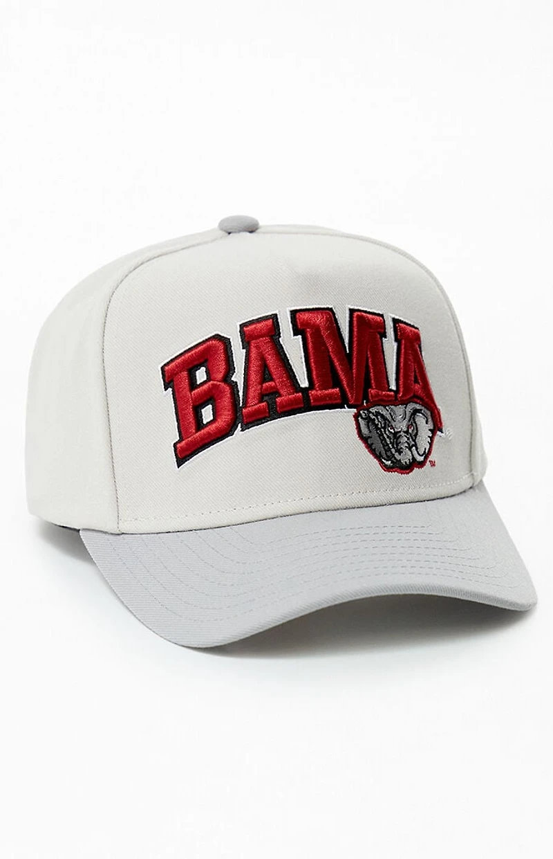 Show your team pride with the NCAA Alabama Crimson Tide Pinch Snapback Hat from Mitchell & Ness. With BAMA front embroidery, a curved brim, Mitchell & Ness back embroidery, breathable eyelets, and an adjustable snapback, this hat offers a comfortable fit and standout style for any Crimson Tide fan.