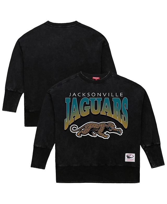 Mitchell & Ness Women's Black Jacksonville Jaguars Delineate Mineral Wash Crewneck Sweatshirt