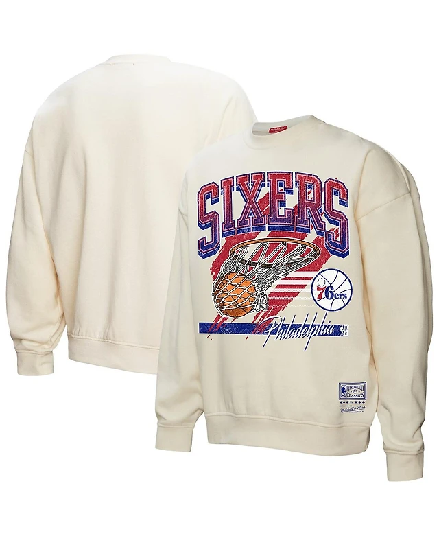 Mitchell & Ness Women's Cream Philadelphia 76ers Brush Bucket Pullover Sweatshirt