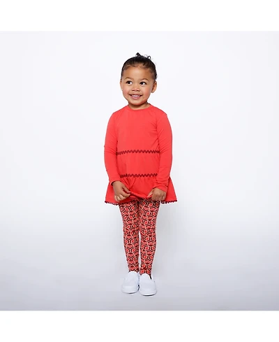 Mixed Up Clothing Girls Ruffle Hem Tiered Tunic and Legging Set - Red Multicolor