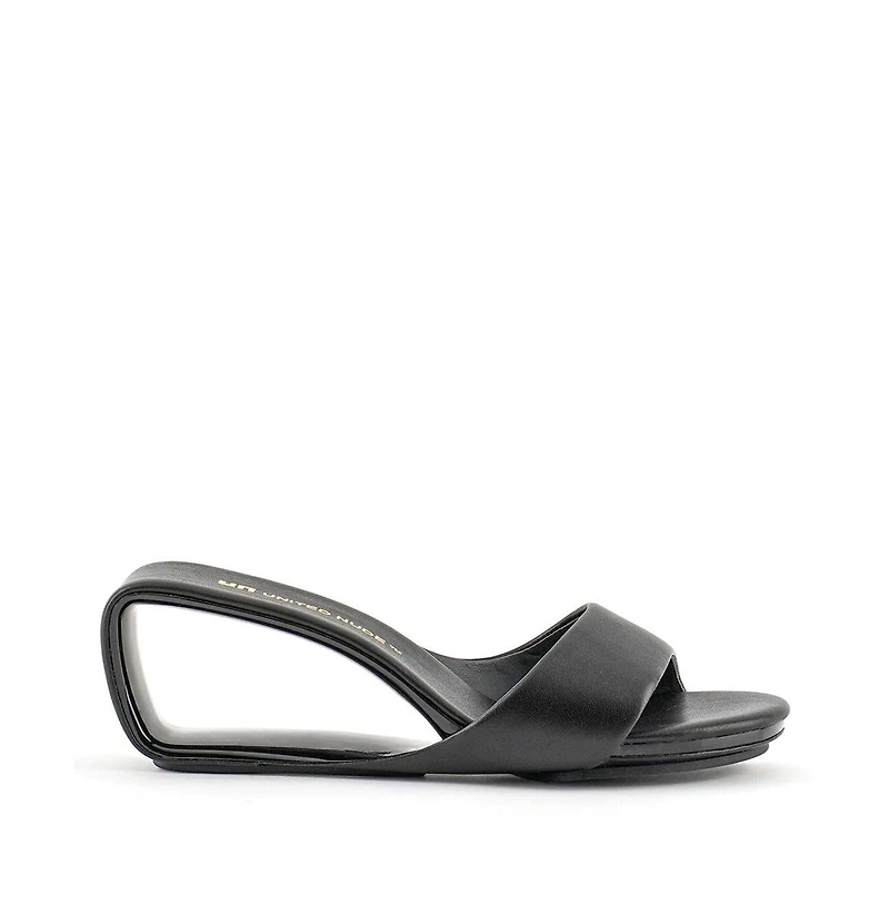 The Mobius Mid is a slip-on sandal with a hollow loop-shaped heel and a single band that forms the sole, heel, footbed, and upper of the shoe. The fiber-reinforced nylon heel is the strongest part of the shoe, while its open wedge shape keeps it incredibly light.United Nude's launch product, the Mobius, was revealed in 2003 and has since become an icon in the world of design. The style was born from a conceptual development of the Mobius strip, a single-sided surface with no boundaries. Its distinct shape was inspired by transforming the frame of Mies van der Rohe's Barcelona Chair into a single band, uniting the upper, sole, footbed and heel into one infinite piece.