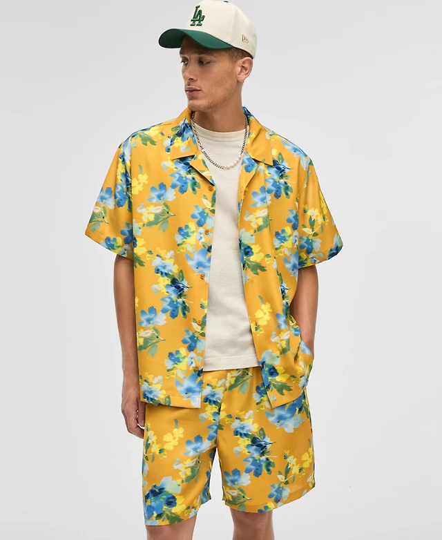 Mode of One Men's Blurred Floral Relaxed-Fit Shiny Twill Camp Shirt, Exclusively at Macy's
