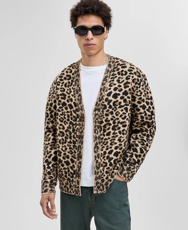 Mode of One Men's Leopard-Print V-Neck Cardigan, Macy's Exclusive