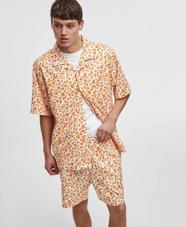 Mode of One Men's Relaxed-Fit Leopard-Print Button-Down Camp Shirt, Exclusively at Macy's