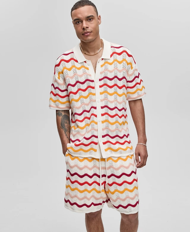 Mode of One Men's Short-Sleeve Gradient Zig-Zag Sweater Top, Exclusively at Macy's