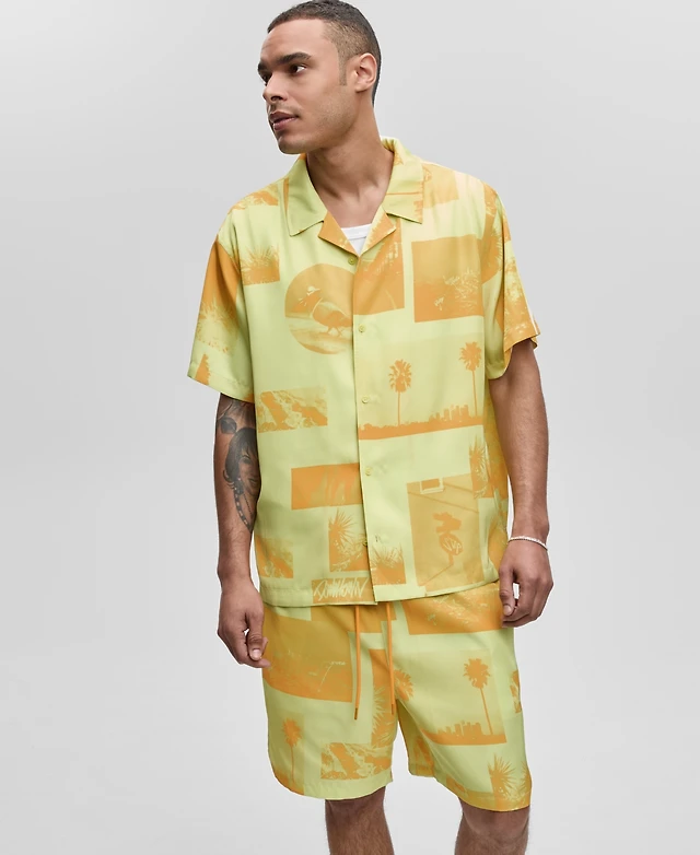 Mode of One Men's Short-Sleeve Photoreal Collage Camp Collar Shirt, Exclusively at Macy's