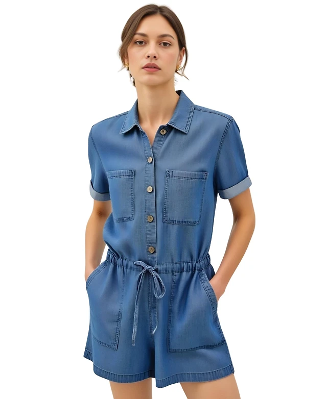 Modenaire Women's Utility Button-Up Drawstring Waist Romper