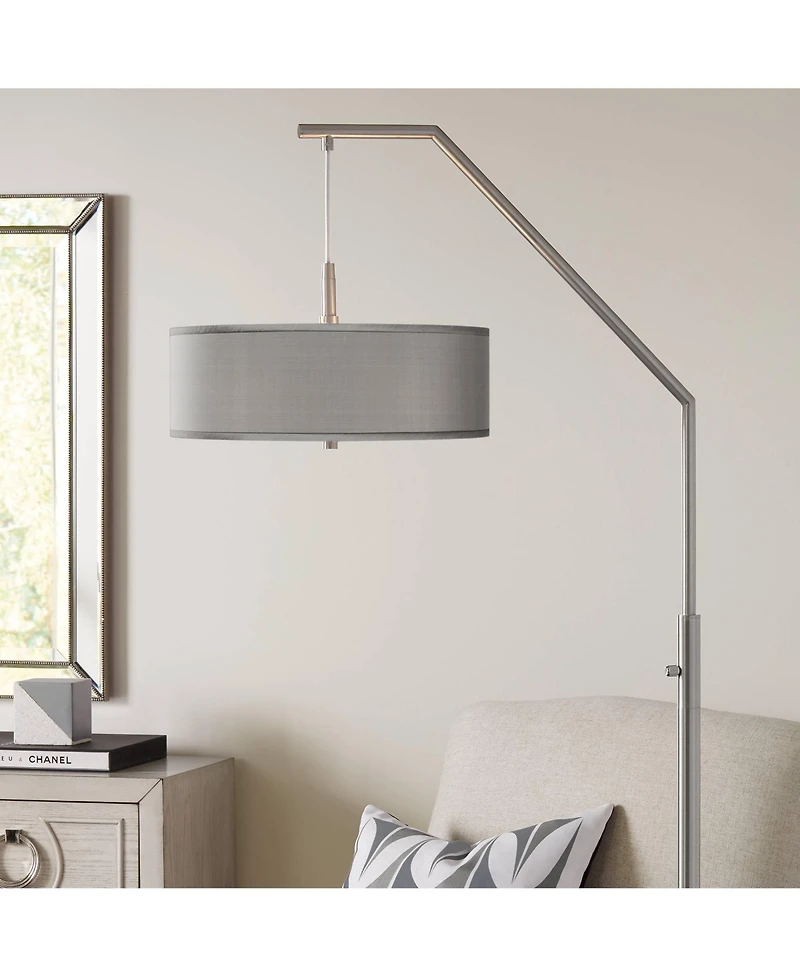 Modern Arched Floor Lamp 71.5" Tall Brushed Nickel Silver Standing Base Gray Textured Faux Silk Drum Shade for Living Room Reading House Bedroom Home in Bloomington, MN