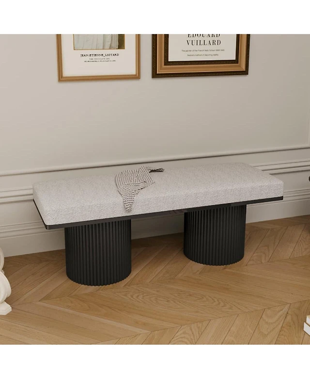 Modern Boucle Upholstered Bench with Chunky Round Wood Legs, Accent Seating for Bedroom, End of Bed, Living Room, or Entryway-The Pop Home