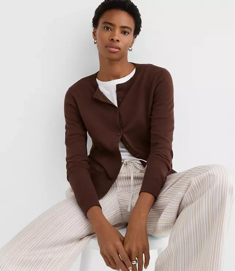 With a modern length in super soft cotton, no wardrobe is complete without this forever - polished knit. Round neck Button front Long sleeves, Bullet1: 22"long, Imported:, Fit: Classic follows your contours with a little room, Length: Abbreviated - hits at natural waist, Fabrication: 100% Cotton, Garment Care: Machine Washable Loft Modern Crew Neck Cardigan Sweater Size XS Black Women's by Loft Size Regular - XS Black Women's 100%, Cotton Crew Neck Long Sleeve Cardigan Sweaters Wear To Work 100% Cotton Machine Washable Best Fall Sweaters