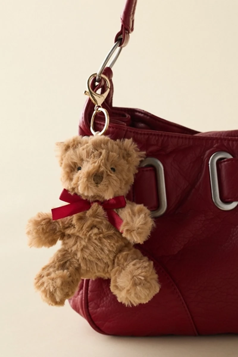 The cuddliest little bear to keep by your side, this plush bag charm from Mon Ami features a classic teddy bear in itty bitty keychain size. Topped with a lobster clasp to easily secure to your bags.