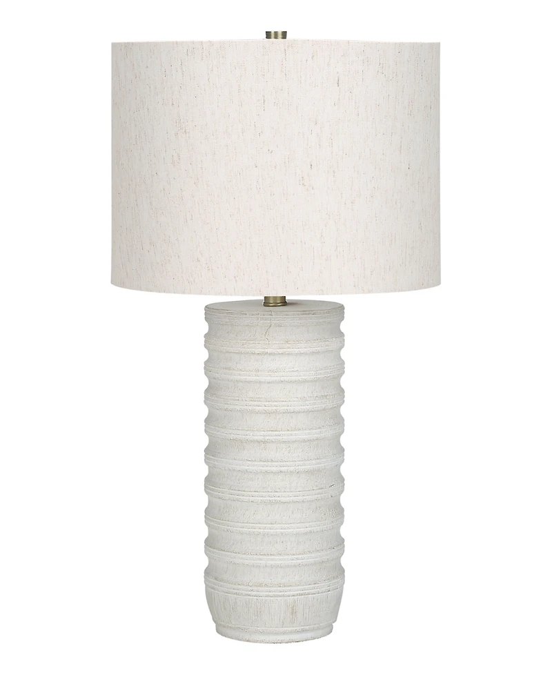 Introducing the perfect combination of style and function with this 28"" table lamp. The cream polyresin, textured cylinder base is complimented with a chic ivory linen shade and finished with a gold finial on top.