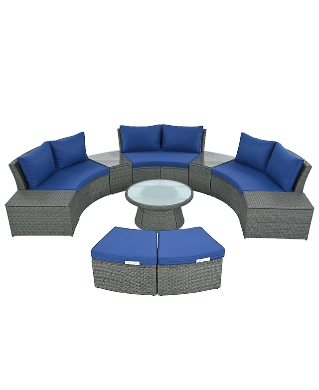 Mondawe 10-Piece Outdoor Sectional Half Round Patio Rattan Sofa Set, Pe Wicker Conversation Furniture Set