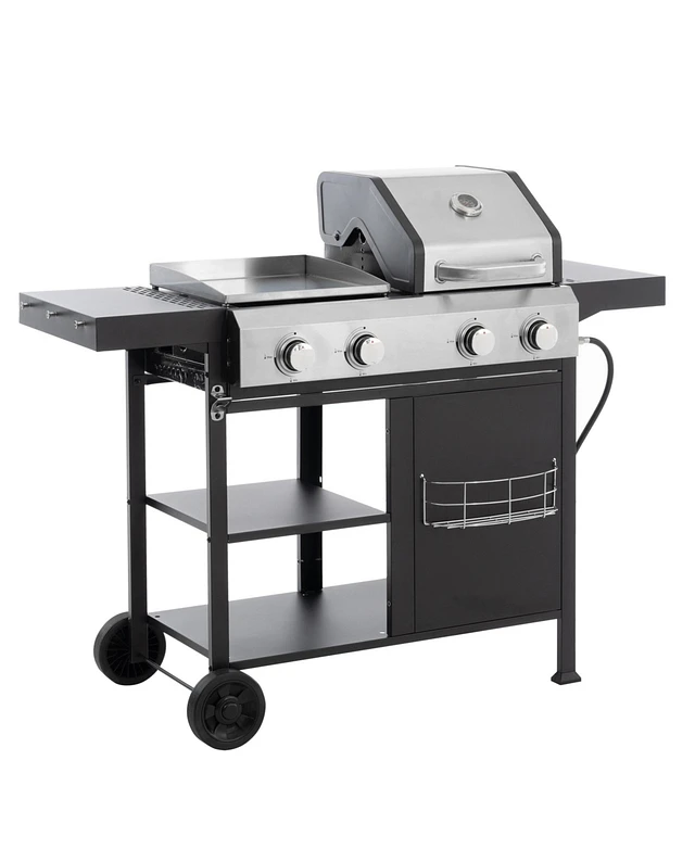 Grill Boss 4-Burner Gas Grill with Side Burner, Cover, Shelves, & Bottle Opener