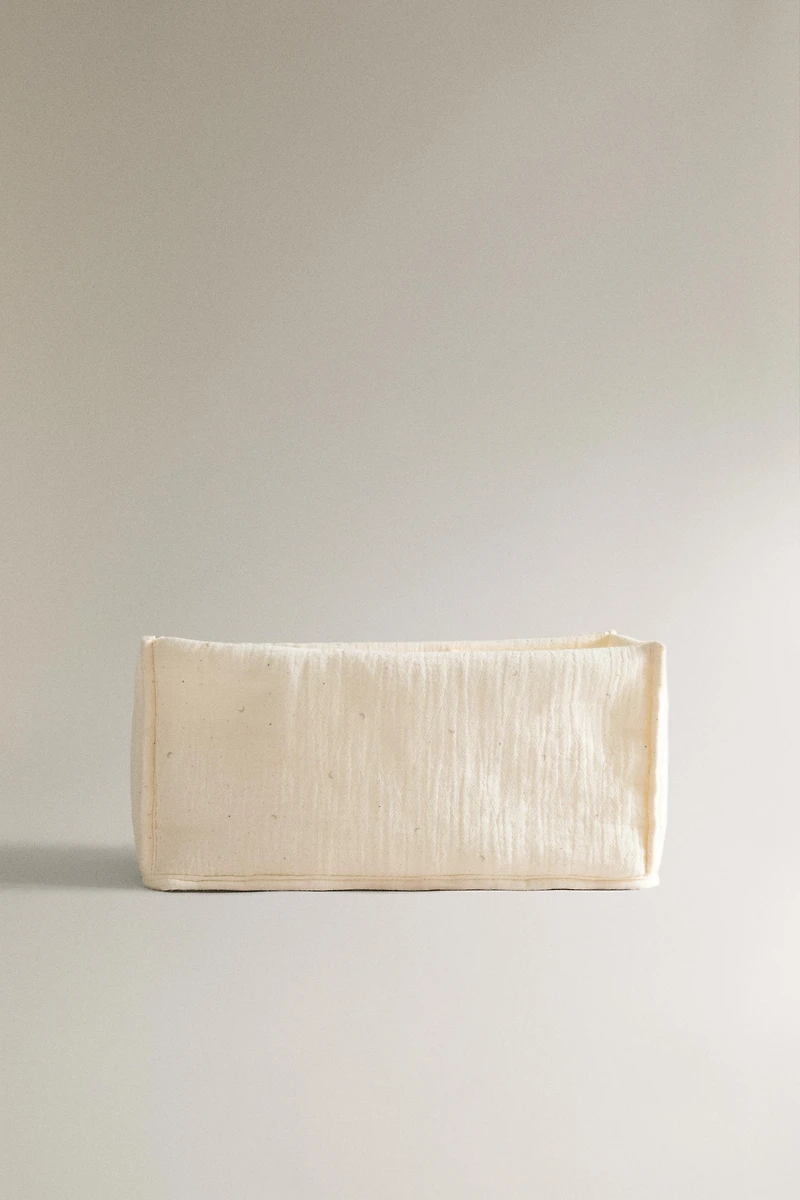 Baby clothes organizer made of cotton with a moon design and three dividers for storage.